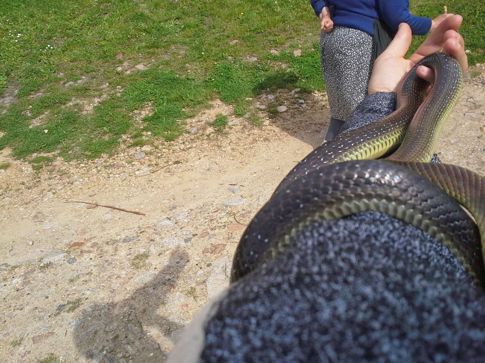 Deşi era prima data când luam în mână un şarpe, totul a decurs natural. Şarpele (sau poate ... şerpoaica) s-a încolăcit pe mâna mea stângă şi a pornit încet să exploreze braţul.